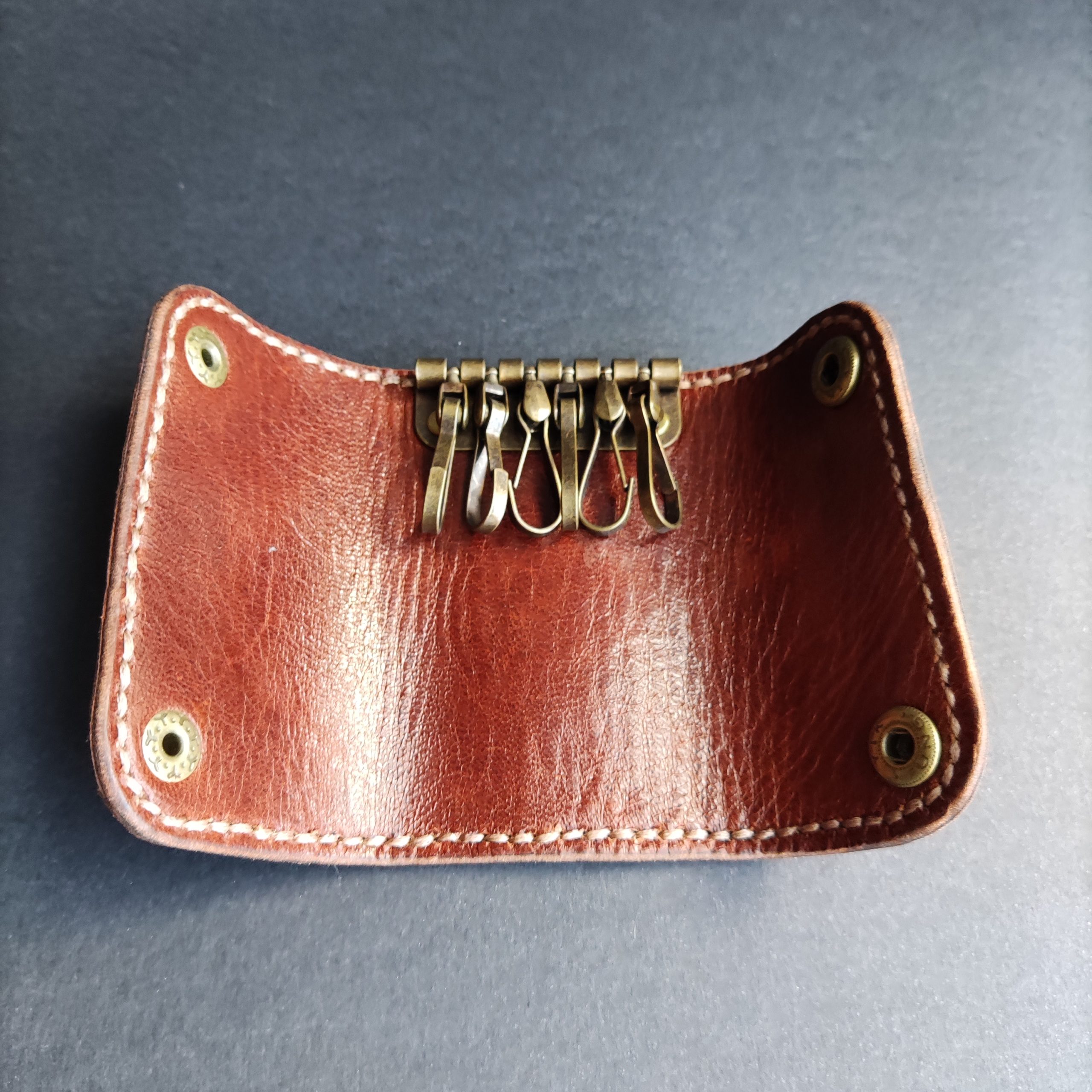 - Llavero con 6 ganchos en piel de equino cosida a mano.